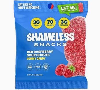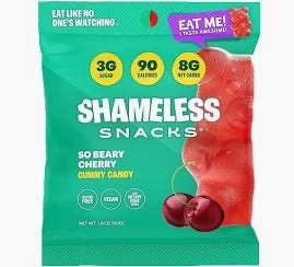 GO AHEAD EAT THE WHOLE BAG GUILT-FREE 70 CALORIES/BAG Low calories compared to an equal serving of candy-aisle gummies. 3G SUGAR/BAG Shamel...